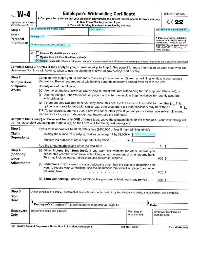 3. Only fill out Step 3 – if you are claiming Kids each year – or change at beginning of each year.