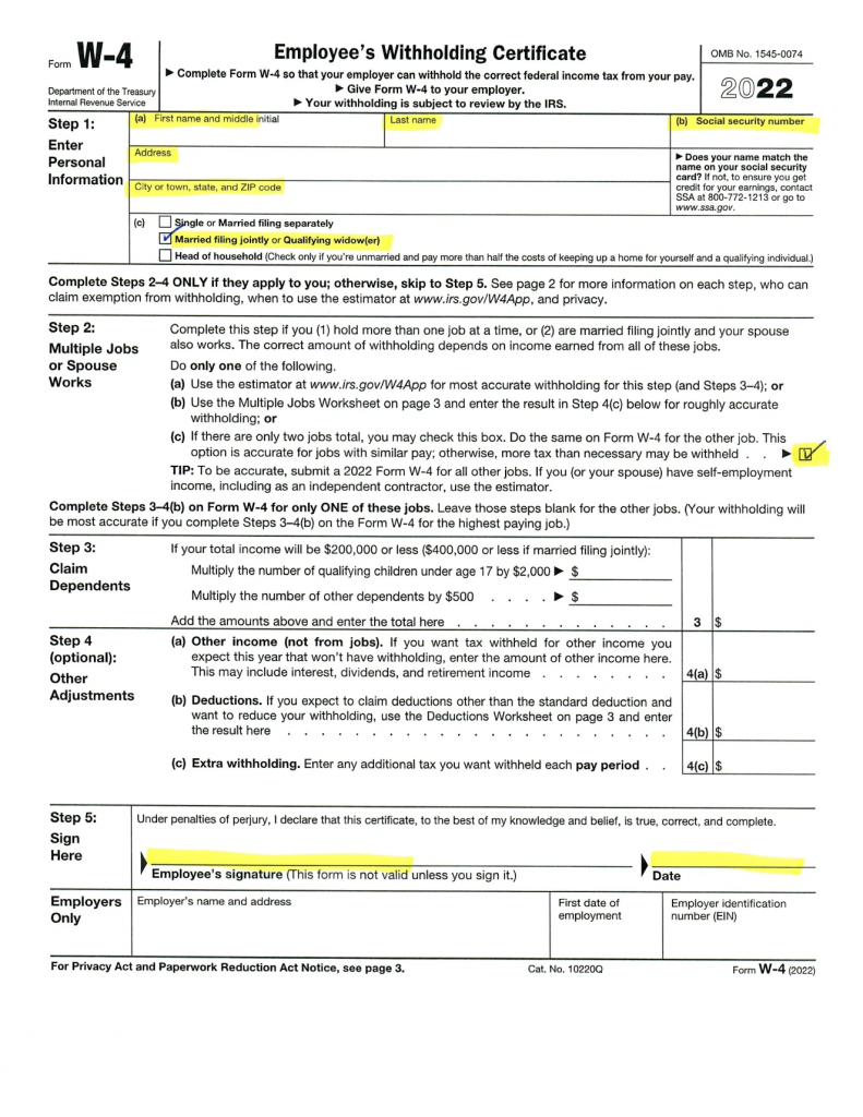 3. Box 4C if you want extra Federal taken out- write amount per check.