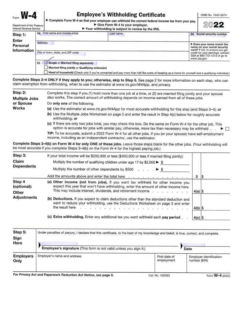 4. Box 4C – If you want extra federal tax taken out – write amount per check.